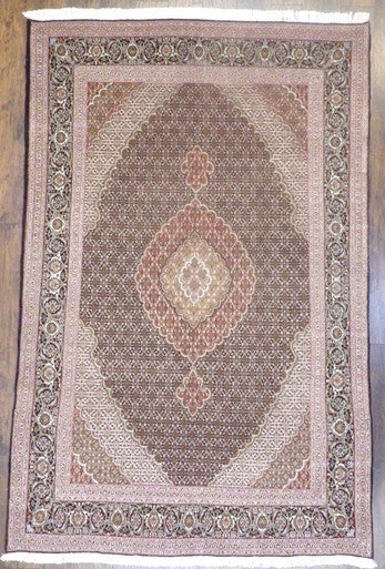 Exact Size: 7'0"x10'0"Construction: Hand KnottedShape: RectangleMaterial: Silk/WoolColor Combination: Black/blackOrigin: SudanThis is a Real Hand-Knotted Oriental Rug. It is not hand-tufted or a machine made rug. Our entire inventory is made of either hand-knotted or hand-woven rugs.Please Note: Due to packaging the texture of the rug will/may be pressed. This is not a defect and should be unnoticeable after several days.Note: Dear Valued-Customer, please be advised that the package size does not reflect the rugs actual size. Many times it is folded and then rolled in order to meet FedEx and UPS shipping regulations.We have made every effort to display the colors of our rugs as accurate as possible. But the colors may vary depending on your monitor type and the illumination levels of your space.