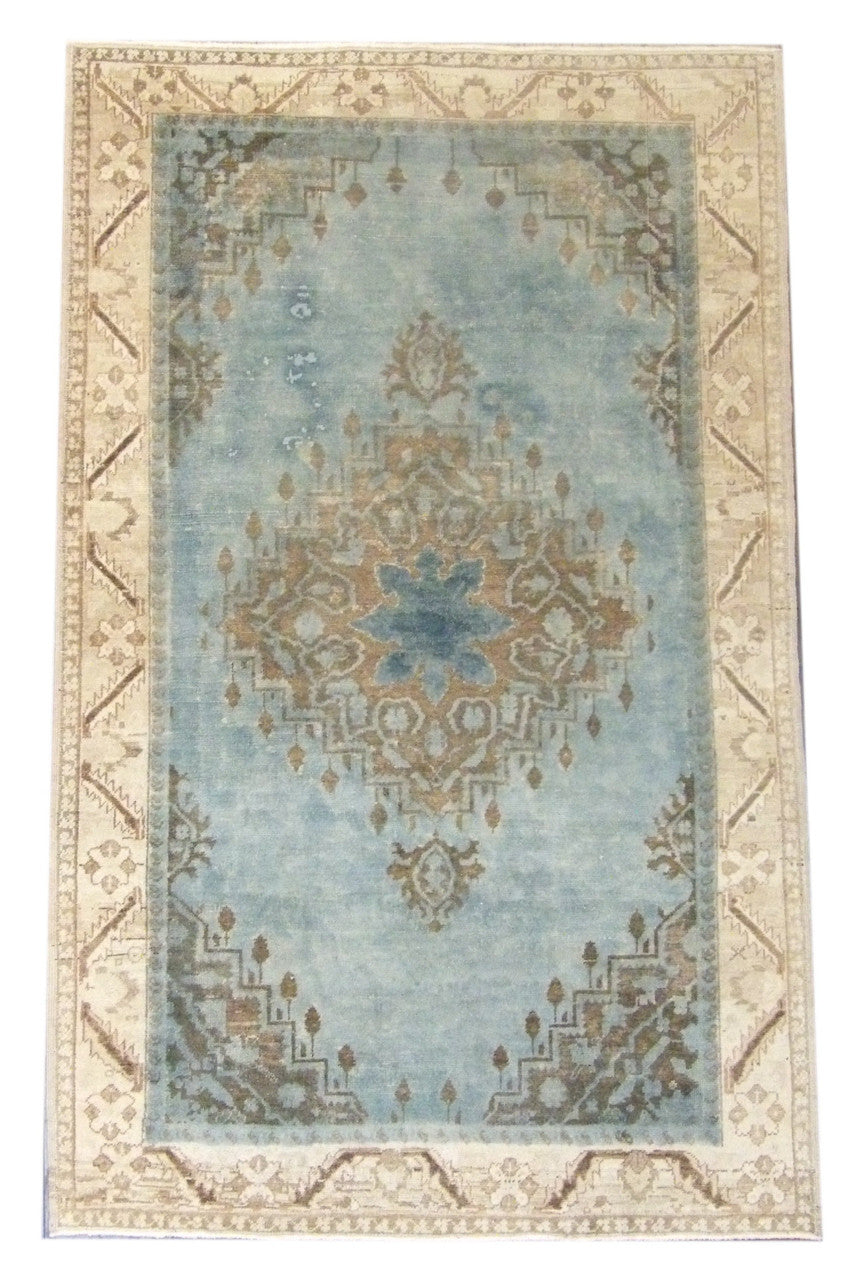 Exact Size:5'0"x8'0"Construction:Hand KnottedShape:RectangleMaterial:WoolColor Combination:Teal/BeigeOrigin:Turkey