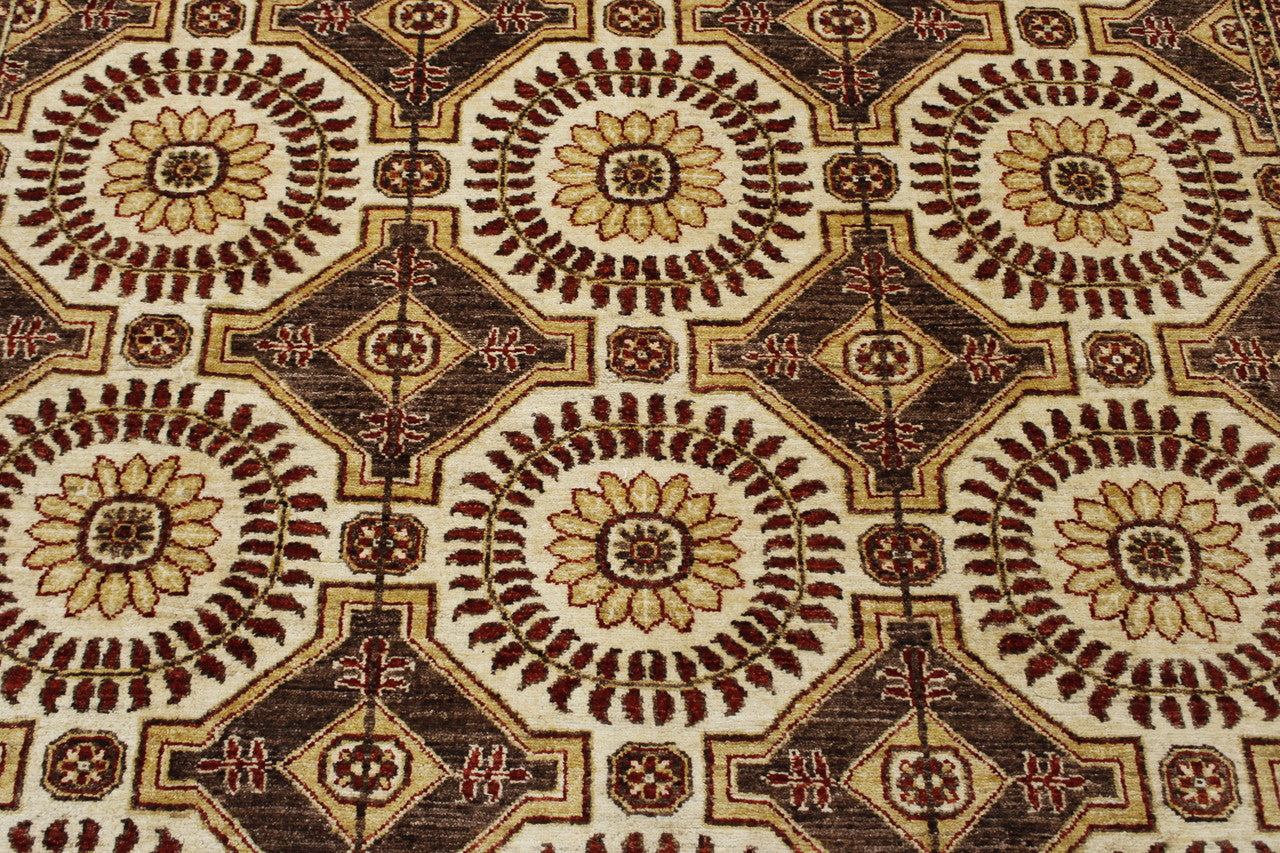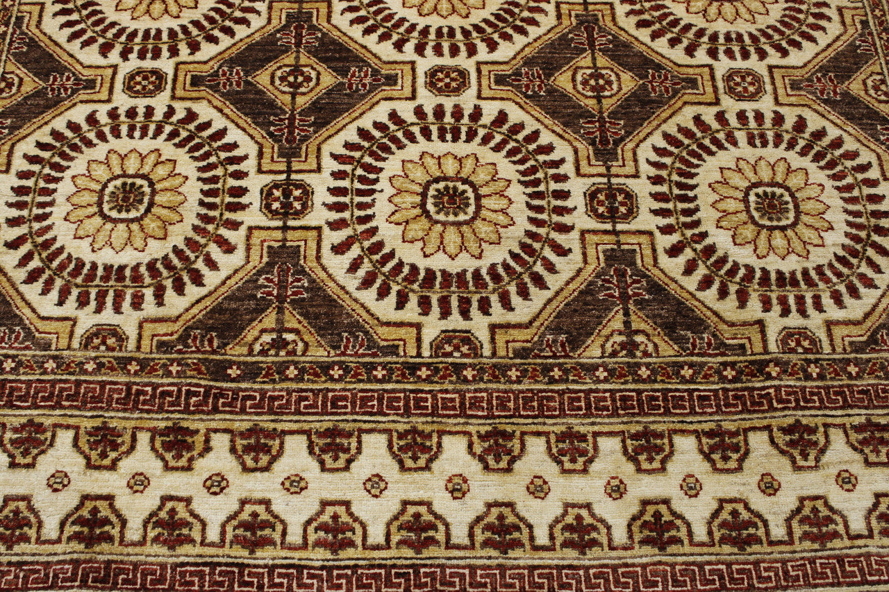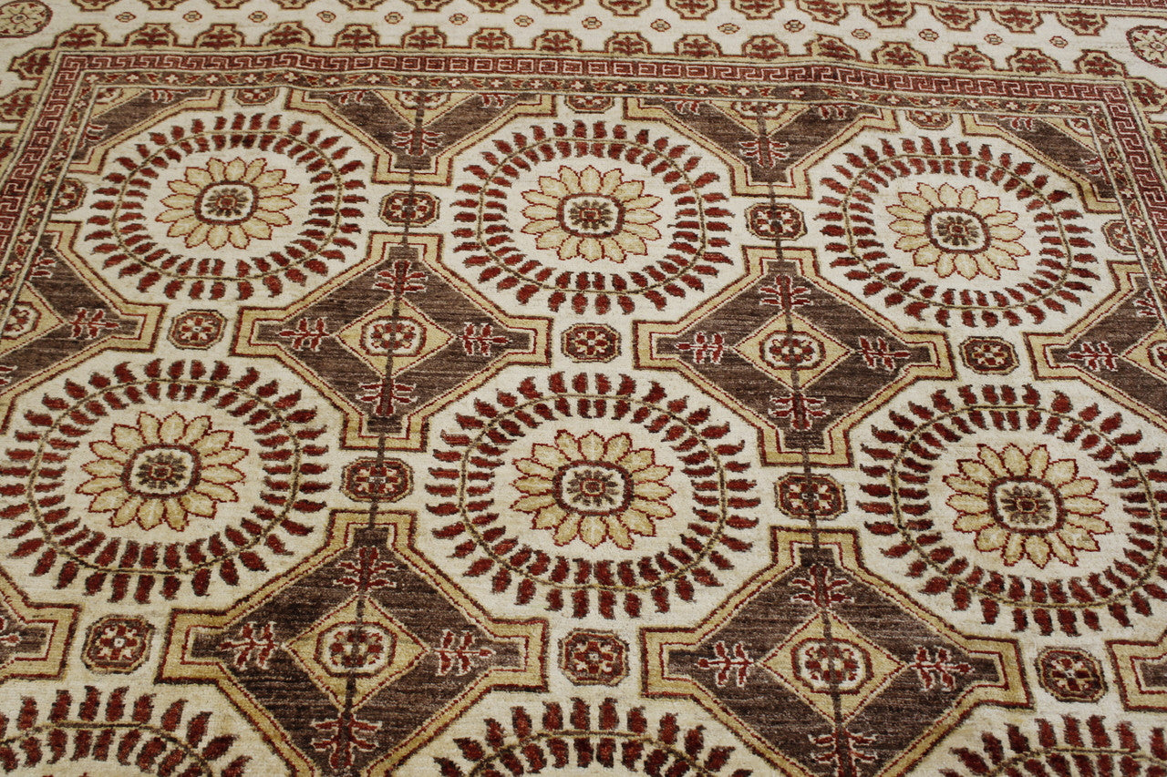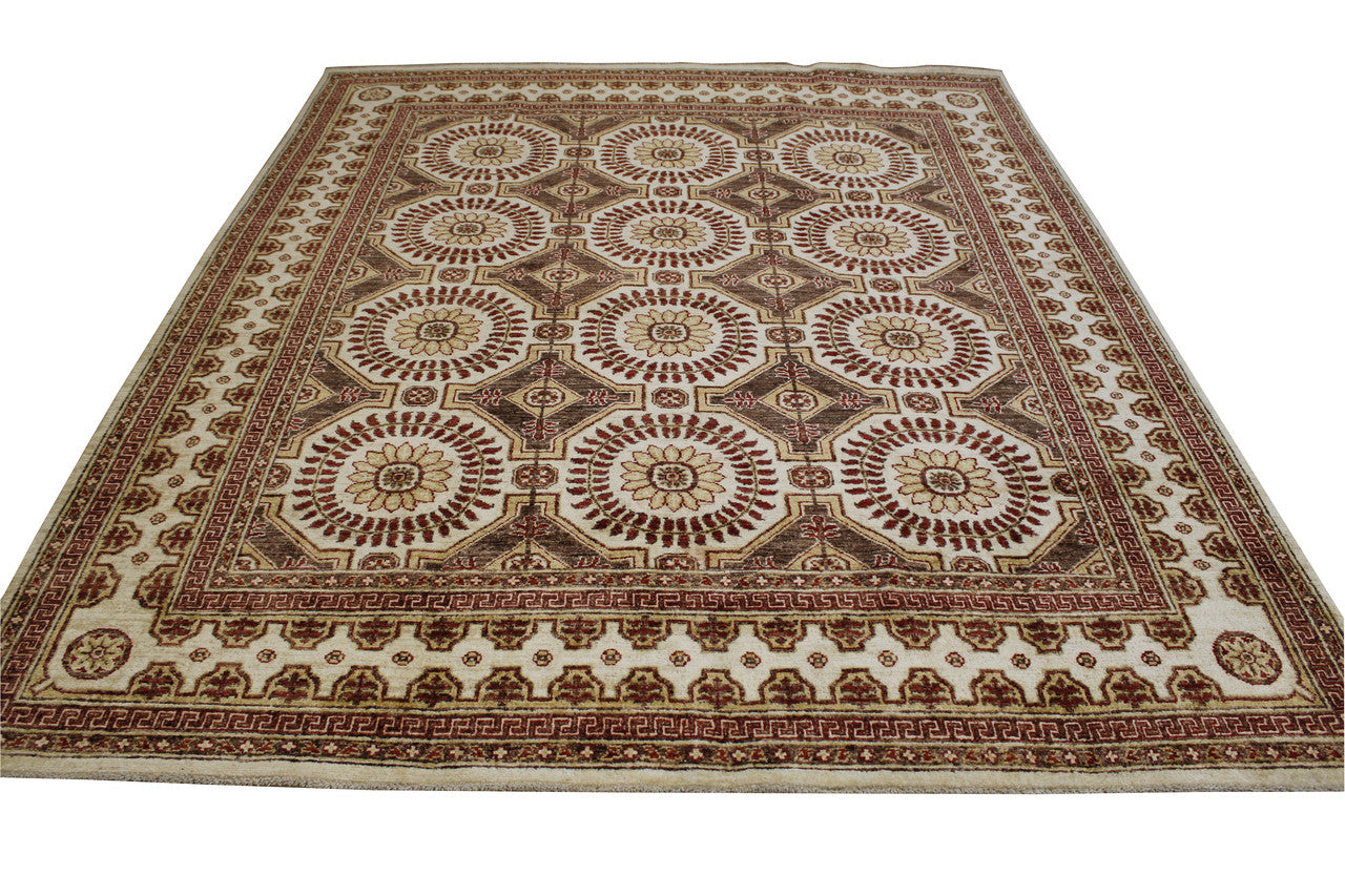 Exact size: 6.8x8.0Construction: Hand Knotted RugShape: SquareMaterial: WoolColor: BrownOrigin: Afghan