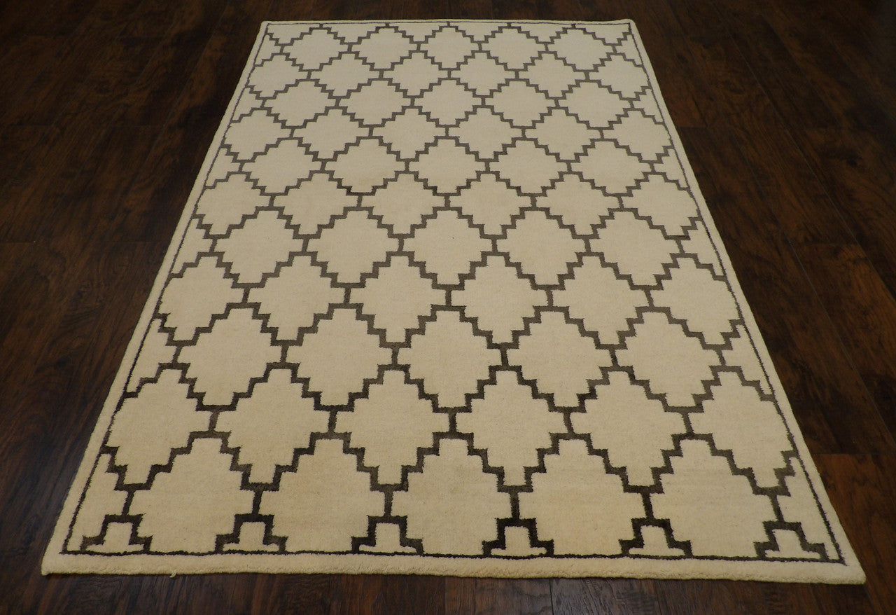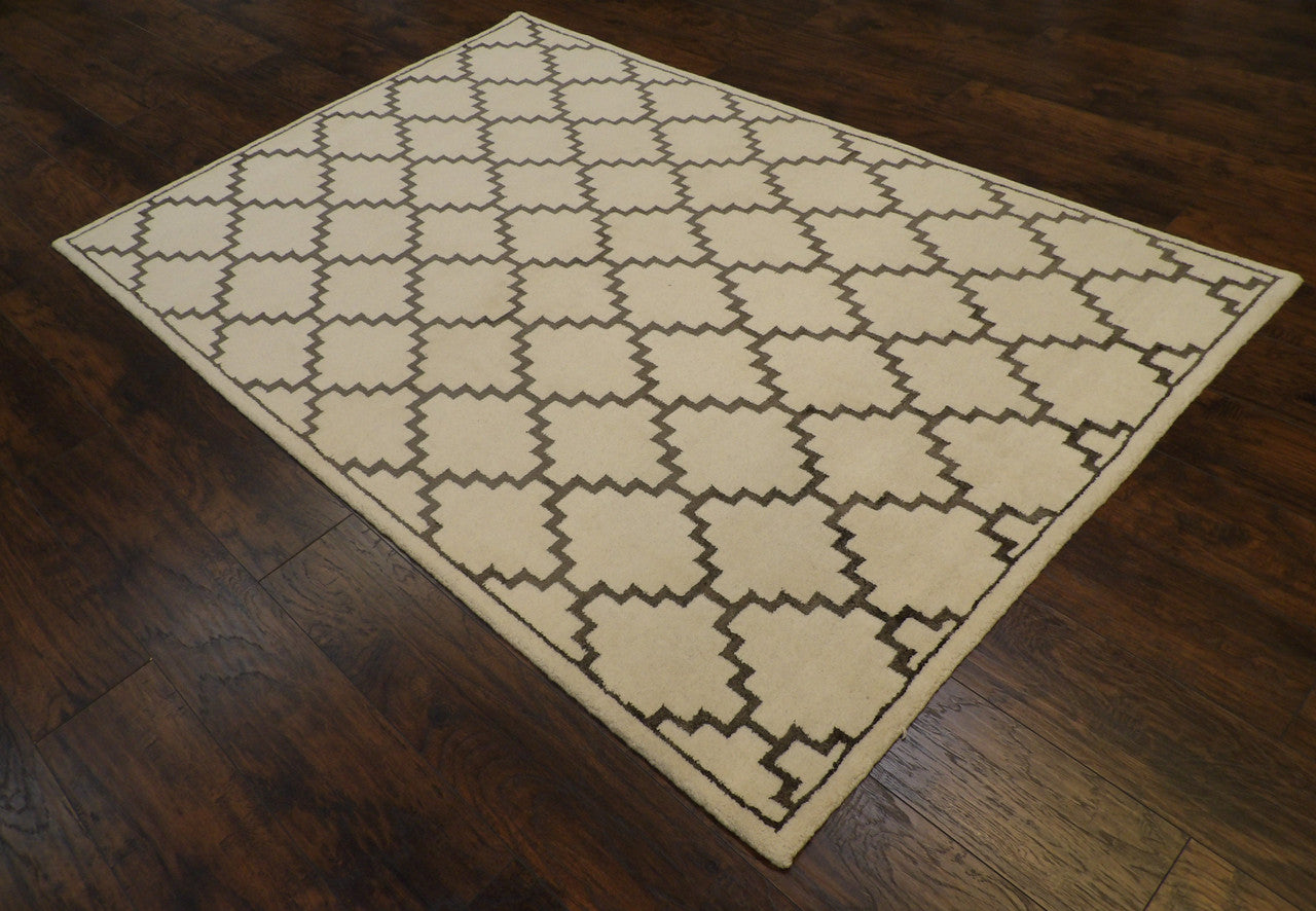 Exact Size:5'0"x8'0"Construction:Hand KnottedShape:RectangleMaterial:WoolColor Combination:Ivory/greyOrigin:India
